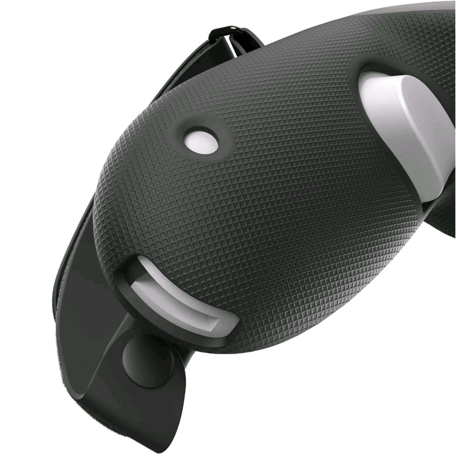 Zvyšte sílu uchycení použitím osvědčené textury. Originální řemínek na zápěstí lze protáhnout otvorem vespod.